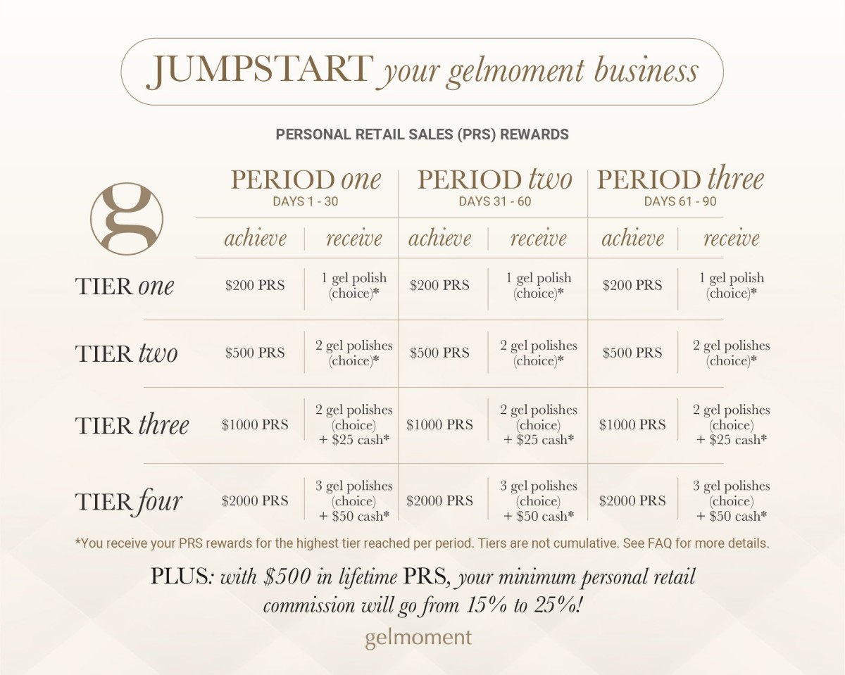 During your first 90 days as a distributor, you can earn free products, cash, and other rewards, on top of all other commissions and bonuses. You will also receive a cash bonus when your personally sponsored recruits earn this bonus for themselves too! See the JUMPSTART PRS REWARDS CHART for the many ways to earn through this program!