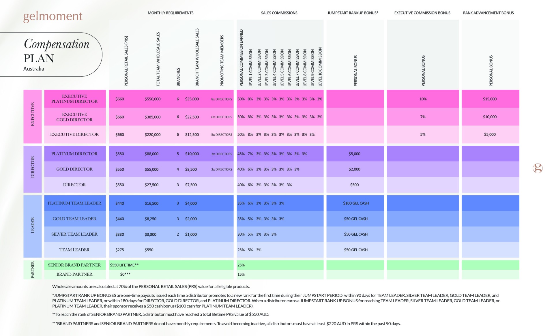 Your growth and advancement through our compensation plan at the ranks of SENIOR BRAND PARTNER to EXECUTIVE PLATINUM DIRECTOR deserve to be recognized and celebrated!